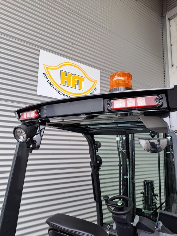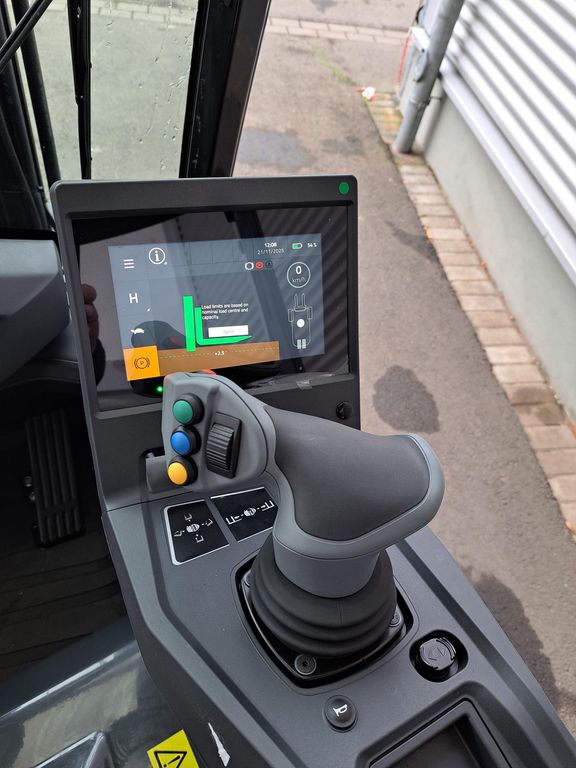 - Multifunktionsjoystick in der Armleuchte, Multifunktions-Touch-Display mit Last,- Mast,- und Radstellungsanzeige, pneumatischer Grammer-Vinyl-Sitz mit Kopfstütze, Innenbeleuchtung, Panoramarückspiegel innen, USB-Kombidose, Bluetooth-Lautsprecher am Kabinendach