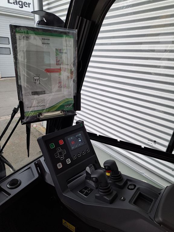 - 2 Mini-Joysticks (4 Wege-Kreuzhebel), Papierklemmbrett, komplette vordere LED-Beleuchtungsanlage bestehend aus Arbeitsscheinwerfer, Fernlicht und Blinkleuchten, Zubehörschiene an der A-Säule, Multifunktionsdisplay mit Anzeige der Radstellung